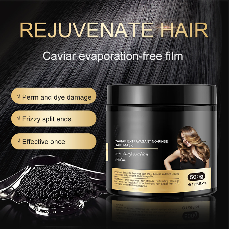 Caviar luxury moisture-free non-evaporating film:Caviar active essence, locked in micron-sized lipid sacs – no heating, no steam required, dissolves in 3 minutes when wet hair is applied, bursts instantly upon contact with water to release 20 times the amino acids and elastin, nourishing directly to the hair core.