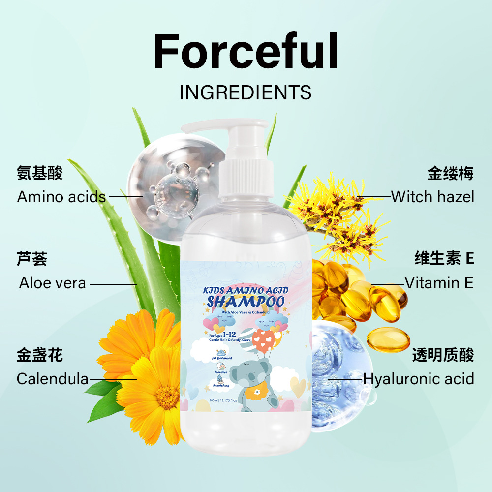 Children’s amino Acid Shampoo: “Food-grade Amino Acid Surfactant System” – Made from disodium cocoyl glutamate, which is the same source as baby tears, the formula is close to the weak acid pH 5.5 of the skin, 0 soap base, 0 sulfate, 0 silicone oil, and does not irritate the eyes.
