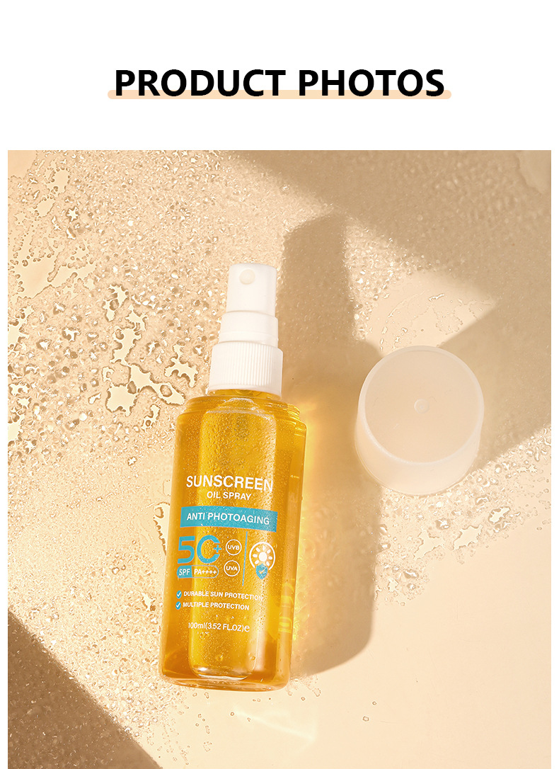 Sunscreen oil spray – water-oil dual-phase instant dissolution technology. Just shake it to form a 0.01mm ultra-thin film. After spraying, it forms a film in 3 seconds, leaving no white dandruff, not feeling sticky or sticky, yet firmly locking in the broad-spectrum sun protection power of SPF50+ PA++++. While providing sun protection, it also applies a layer of water-locking repair film to the skin, achieving “sun protection + skin care” in one step.