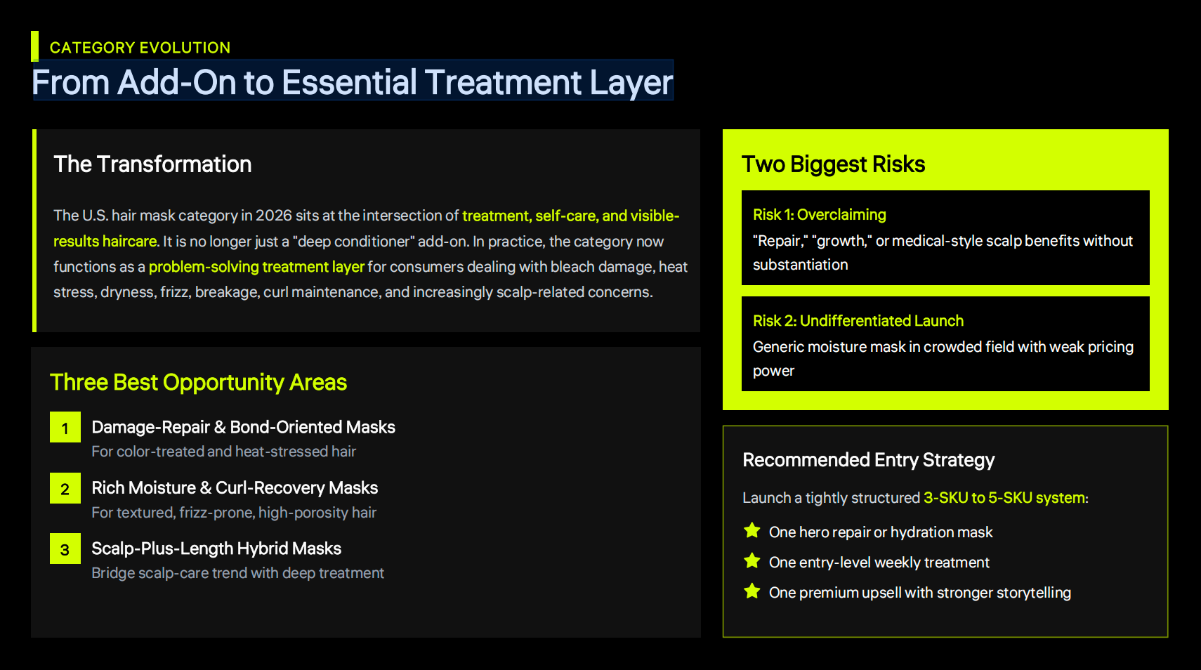 For a new brand, the practical conclusion is simple: do not position hair masks as generic conditioner extensions. Position them as high-margin treatment SKUs with a sharper problem-solution story.